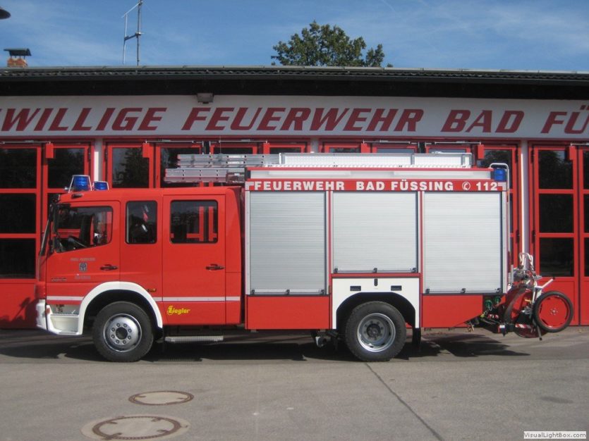 HLF 20/16 Funkrufname Florian Bad Füssing 40/1 Besatzung 1/8 Fahrgestell Mercedes Benz 1629F Atego zulässiges Gesamtgewicht 14.500 kg Leistung: 210 KW (286 PS) Maße (L x B x H): 8.450…